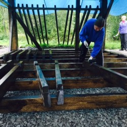 det først og fremst å få torv på taket, og benker skal også snekres inne i